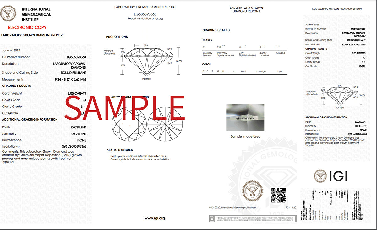 *ラボグロウンダイヤモンドと天然ダイヤモンドの主な違いは、生成過程のみです。天然ダイヤモンドは地中で長い年月をかけて生成されますが、ラボグロウンダイヤモンドは数週間でラボ内で生成されます。ラボグロウンダイヤモンドは、不純物が少ないType IIaというタイプの結晶で、天然ダイヤモンドの中でも希少なタイプです。天然ダイヤモンドと同様に、4C(カラット、カラー、クラリティ、カット)で評価され、国際的な鑑定機関による鑑定書も発行されます。紛争ダイヤモンドの可能性がなく、天然ダイヤモンドと同等の品質でありながら、価格は比較的安価な傾向があり採掘を伴わないため、環境への負荷が少なく、持続可能な選択肢として評価されています。
